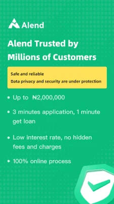 Alend: Gano manhajar lamuni ta sirri mafi sauri kuma sauƙi a Najeriya. Samun kuɗi nan take kan layi don biyan buƙatunka, ba tare da buƙatar jingina ba. Rayuwa mai sauƙi tare da Alend.