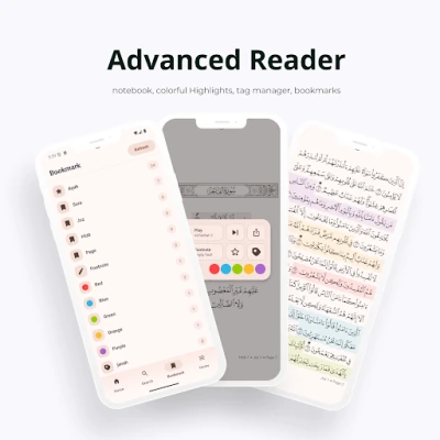 Baya ga kyawun gani, wannan manhaja tana ba da ingantattun kayan aikin karatu da nazari. Tare da fasalin mai karanta littattafai na zamani, zaka iya amfani da littafin rubutu, sanya alamomi (tags), yi wa jimloli muhimmai haske, da adana shafuka (bookmarks) don komawa gare su a kowane lokaci. Tana ba da nau'ikan tsarin karatu daban-daban, ciki har da shafin Alkur'ani kawai, shafin fassara, tsarin kamar hira (ChatLike), da na waƙa (Lyric), yana ba ka damar zaɓar yadda kake son nazarin ayoyin Allah. Har ila yau, akwai tsarin haddar Alkur'ani (Khatm) wanda zai taimaka maka tsara yadda zaka kammala karanta dukan Alkur'ani a cikin lokaci, tare da ci gaban bincike mai zurfi a cikin Alkur'ani, fassarori, da bayanan rubutunka, da kuma ayar yau da kullun ko ta bazuwa.