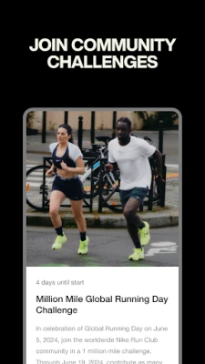 Haɗu da abokai da sauran 'yan gudu a cikin ƙalubale masu ban sha'awa. Ku ƙirƙiri ƙalubalen ku ko ku shiga waɗanda ke gudana, ku raba nasarorin ku, kuma ku sami ƙarfafawa ta hanyar yabon da kuke karɓa yayin gudu. Kowane kilomita da aka gudu yana ƙara muku maki, kuma za ku iya samun lambobin yabo da kofuna don sababbin matakai na sirri. Ba kawai game da gudu bane; Nike Run Club kuma yana ba da damar lura da takalman ku ta hanyar 'mile counter' don sanin lokacin da ya kamata ku canza, da kuma ba da shawarwari kan lafiya da motsa jiki a cikin Nike Fitness Feed, gami da labaran 'yan wasa da sababbin kayayyaki daga Nike Running.