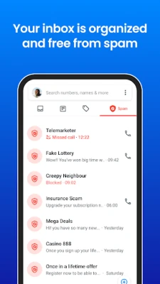 Sarrafa kiran wayarka da sakonninka cikin sauri, ta hanyar tace masu kira ba tare da an so ba, zamba, da sauran cututtuka marasa bukata. Da jerin sunayen masu aika saƙon banza na al'umma, wanda miliyoyin masu amfani a duniya ke sabuntawa, Truecaller shine kawai manhajar da kake bukata don sanya sadarwarka lafiya da inganci.